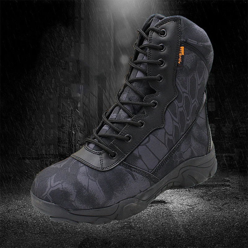 Free shipping Python Pattern Tactical Shoes High-Top Military Fan Commando Outdoor Trekking Hiking Boots Camoufla