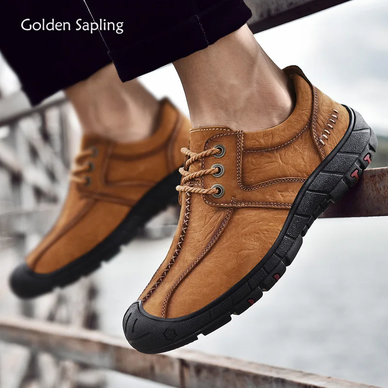 SALE Golden Sapling Outdoor Shoes Men Genuine Leather Retro Tooling Boots Soft Rubber Mountain Trekking